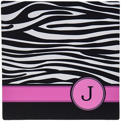 3dRose LLC 8 x 8 x 0.25 Inches Mouse Pad, Letter J Monogrammed Black and White Zebra Stripes Animal Print with Hot Pink Personalized Initial (mp_154281_1)