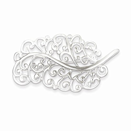 -. Title : Sterling Silver Filigree Leaf Pin (1.06 in x 2.32 in)