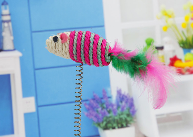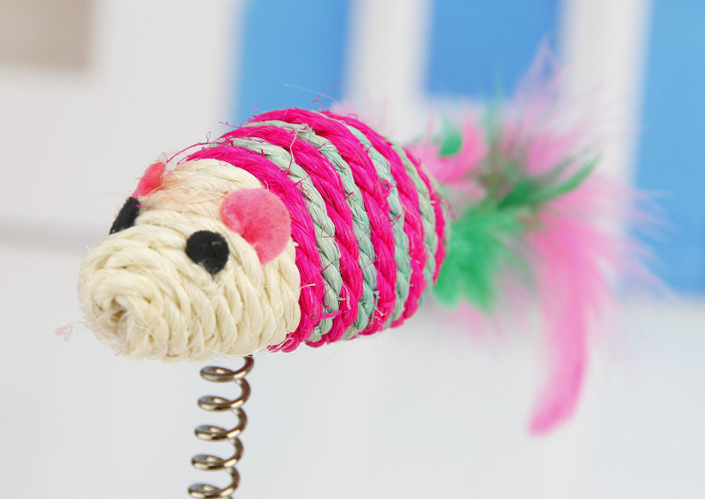 小老鼠呢是毛茸茸的,还有个长长的羽毛尾巴,给家里的喵喵买一个的话,可以玩上好久啦~一个人喵自娱自乐呢~ 高度25CM左右