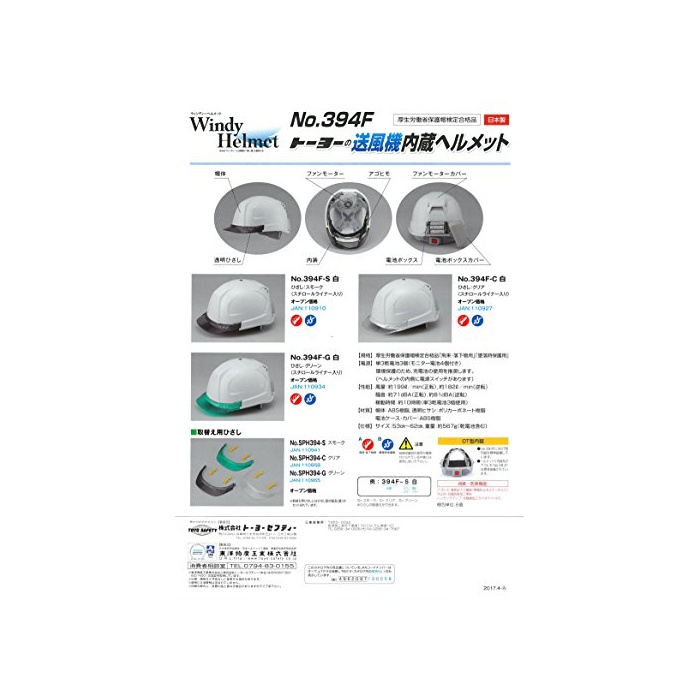 원본상품명: TOYO 送風機ヘルメット 白 ウィンディヘルメット NO.394F