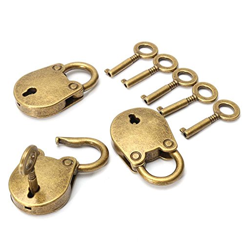 MUMUTIPS 3-Pack Vintage Antique Style Mini Padlocks Copper Key Lock