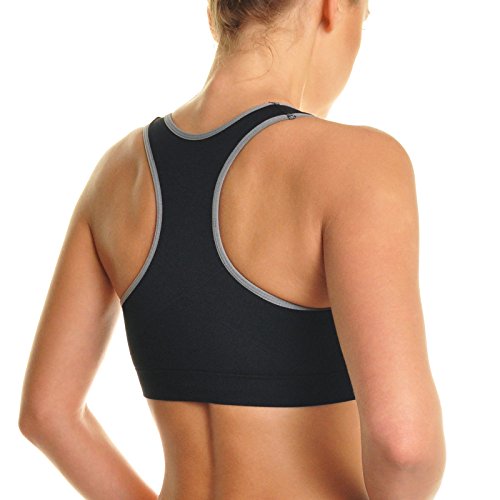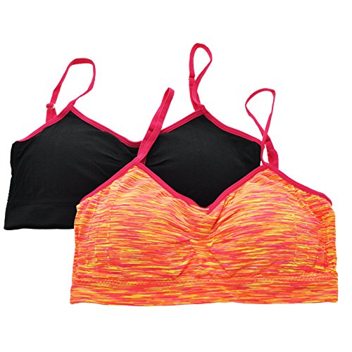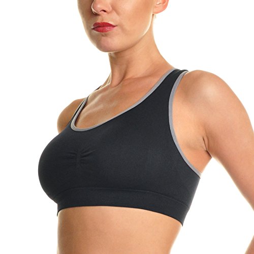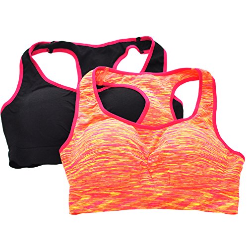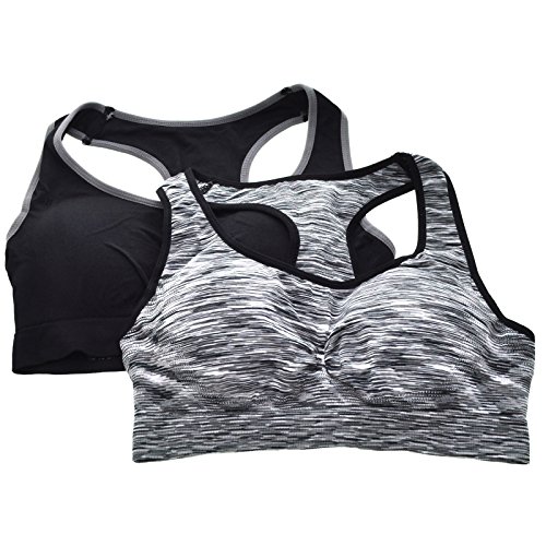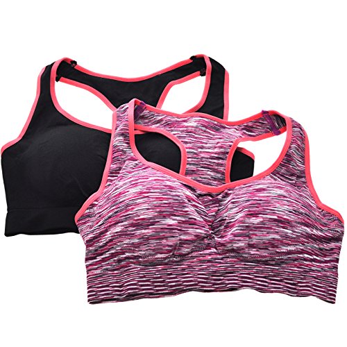 This seamless racerback sports bra provides light support for all kinds of indoor sports. Comes with double layer front panels and removable padding inserts as nipple concealers. 90% Nylon, 10% Spandex. One size fits up to bra size 38D. Hand wash in cold water, line dry.Feature