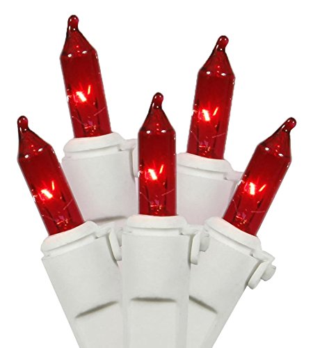 Vickerman Mini Light Set Features 100 Bulbs Lights on White Wire and 4" Bulb Spacing for Indoor/Outdoor Use, 33', Red