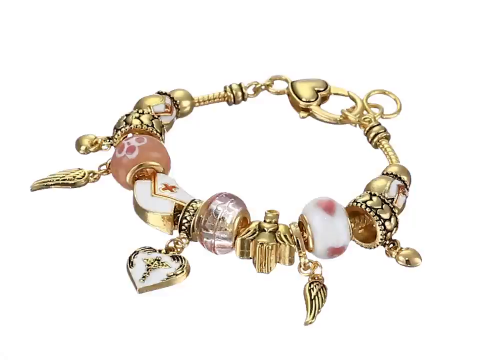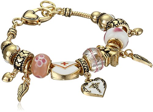 Nurse Enamel and Glass Beads with Metal Drops Charm Bracelet