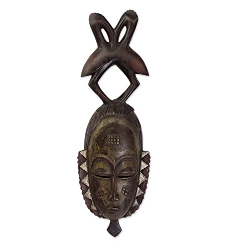 NOVICA Decorative Large Sese Wood Mask, Brown 'Togetherness'