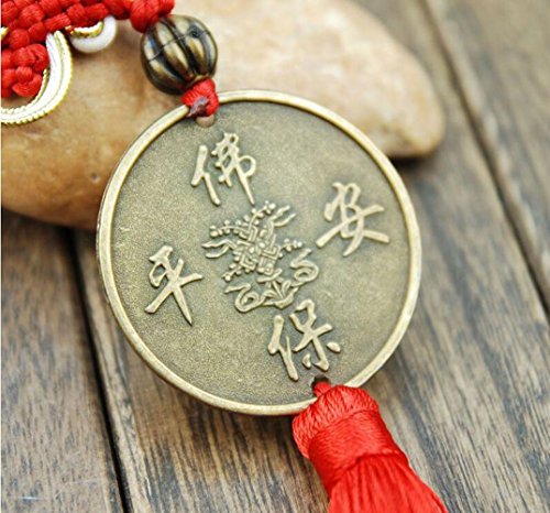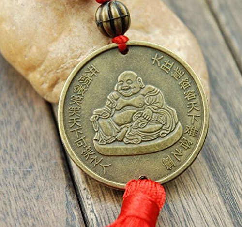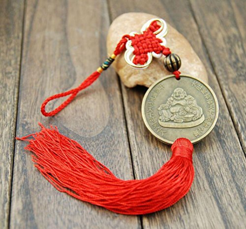 Laughing Buddha Chinese Feng Shui Happy Buddha Coin with Chinese knot Red Tassels for Happiness Money and Wealth by Novelty House