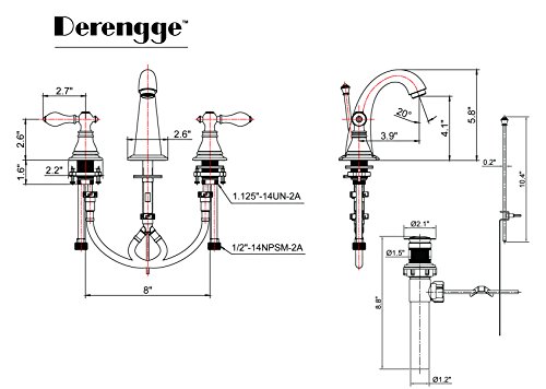 -. Title : Derengge F-9305TB-KGBN Stainless Steel Two-Handle 8" Widespread Bathroom Sink Faucet with Pop up Drain,cUPC NSF AB1953 Lead Free Brush Nickel