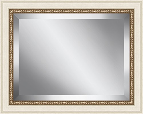 Ashton Art & Décor White with Antique champagne Bead Framed Beveled Plate Glass Mirror, 26 by 30-Inch