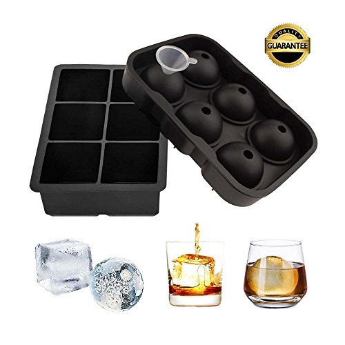 - NON-STICK&EASY TO USE: Compared with traditional stiff plastic ice cube molds, our product made primarily from a flexible silicone material and stretch well. They are releasing the ice cubes more easier when you push the bottom of the molds. Each package including 1 Sphere Ice Cube Tray, 1 Square Cube Mold, 2 Plastic Filling Funnel.