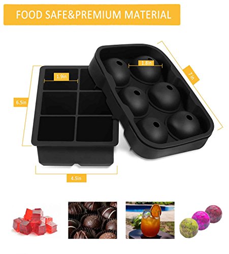 Ice Cube Trays- Sphere Ice mold and Large Square Mold for Whiskey, Cocktail, Beverages and More, Easy Release and Non-stick, Premium Food Grade Silicone(Set of 2) (6 Ice Balls& Ice Cubes)
