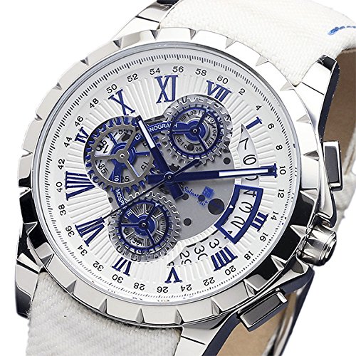 쿼츠,10기압 방수,크로노그래프(1/1 초계,1/10 초계,60 분적산계)고, 날짜 표시,월 차이±20초,컬러:화이트×실버(문자판)고, 화이트(벨트)