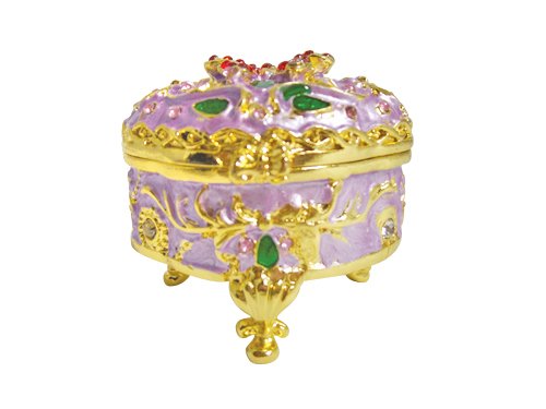 -. Title : [NEW] Jewelry Trinket Box Figurine Case Vintage Collectible for Keepsake Art Decor Holder Pill Organizer- Magnet Secured Storage, Jeweled w/ Crystals (Engraved & Detailed Cases) (Purple 3 Legged)