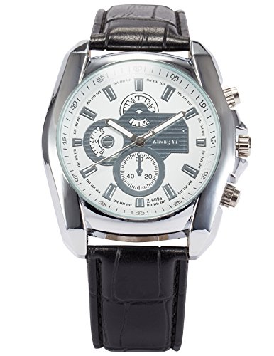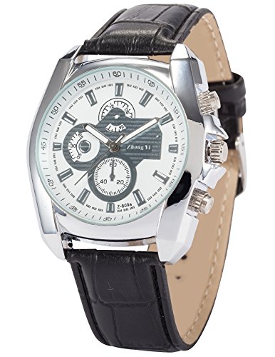 AMPM24 맨즈 PHN062 쿼츠 아날로그 블랙 레더 밴드 손목시계