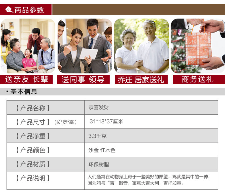 鸡摆件招财开业乔迁新居生日生肖礼品客厅电视柜办公室工艺装饰品