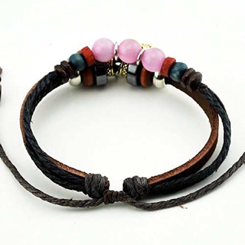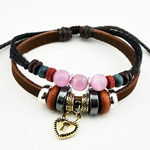 -. Title : SusenstoneHeart Shape Metal Wood Beaded Adjustable Leather Bracelet