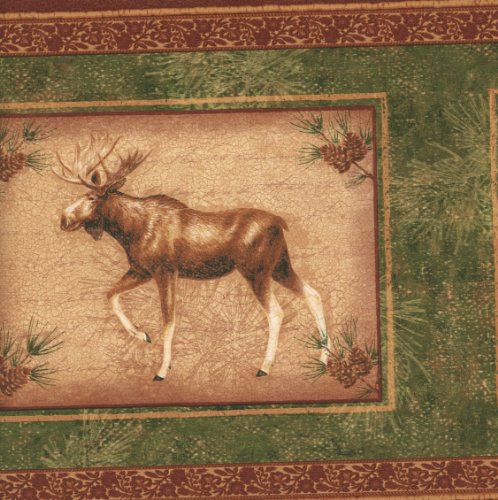 -. Feature : 15 Foot Long Prepasted Spools - 8 Inches Wide / Lodge Wallpaper Border / Bear, Deer, Moose Profiles in a repeating pattern / Hunting, Cabin, Fishing Wallpaper Border / Pinecones, Camping