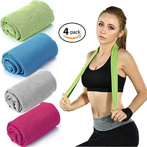 WaterLuu Evaporative Cooling Towel ,Quick Cooling Towel 40"x12" Snap Cooling Towel for Sports, Workout, Fitness, Gym, Yoga, Pilates, Travel, Camping & More (4 Pack)