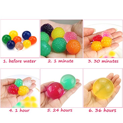 ◊Extensive Application: The water pearls are suitable for home decoration, wedding centerpieces, baby showers, table toys, plant decoration, tactile toys, vase filler, foot spa, preschool kids activities, kids color recognition, counting, fine motor skill, wild imagination training, language development, or as a replacement to Orbeez.
