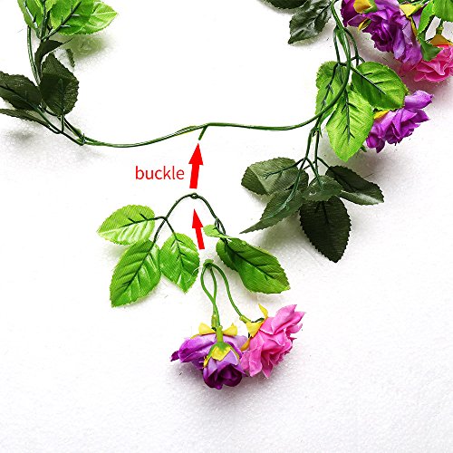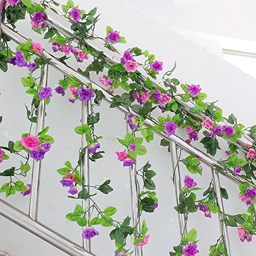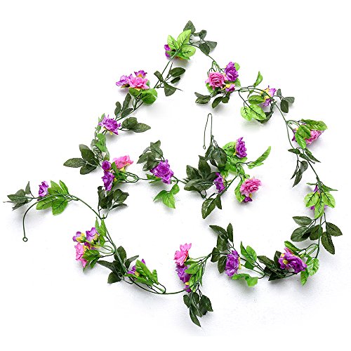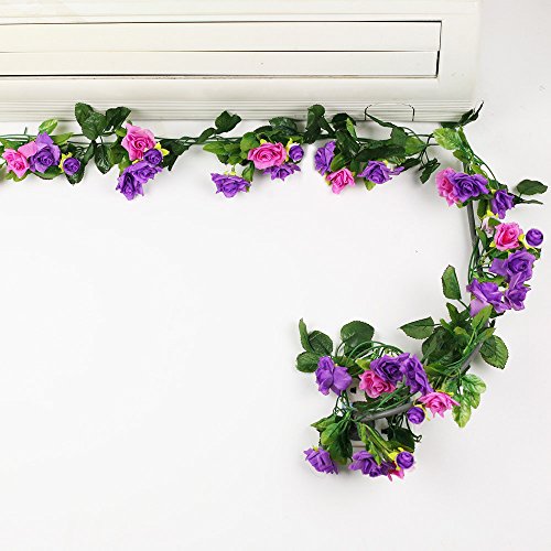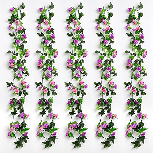 Yiliyajia Artificial Rose Vine Garlands,Silk Flowers Flora Green Leaf Garlands,Home Decor Wedding Decoration 8Ft Length Pack of 5 (purple)