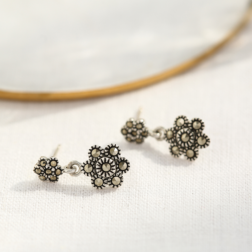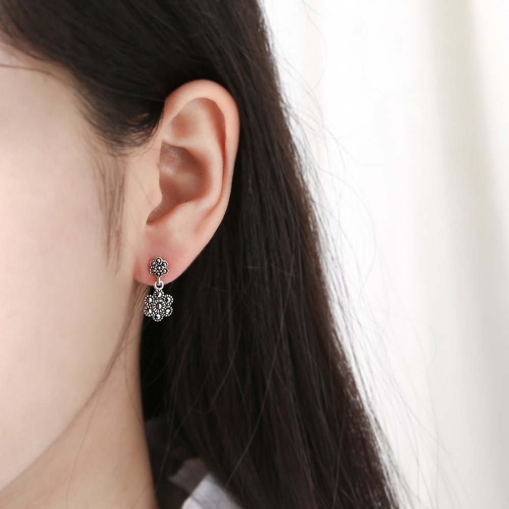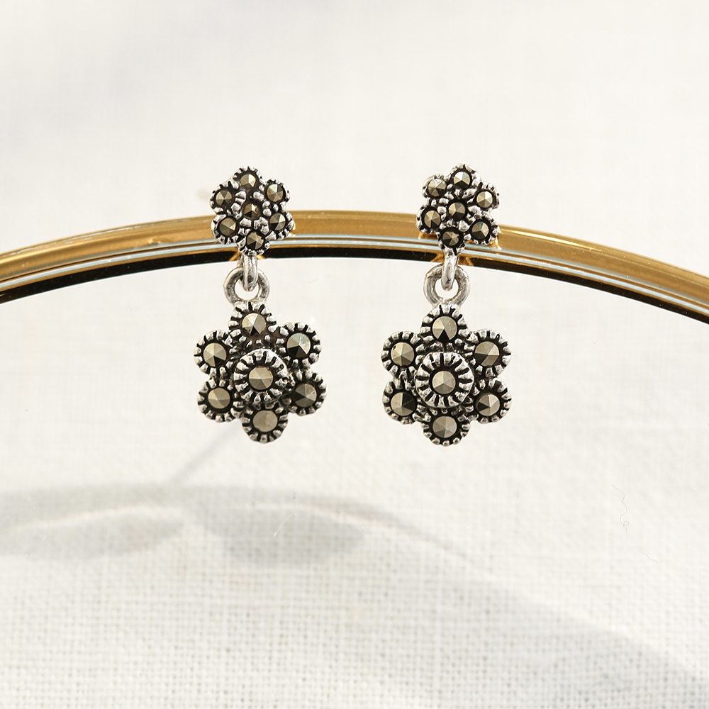 마카사이트 플라워 드롭 귀걸이