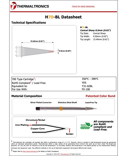 Thermaltronics H70-BL Conical Sharp 0.5mm (0.02") interchangeable for Hakko T31-02BL