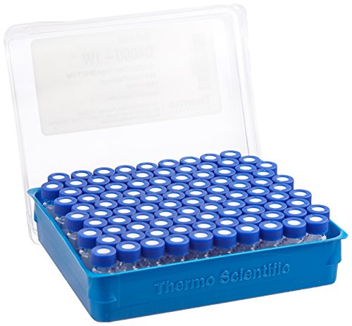 National Scientific Target DP C5000-192W Polyethylene Closure for Clear Glass Assembled Vial with I-D Patch, Red PTFE/White Silicone Septum, Blue (Pack of 100)