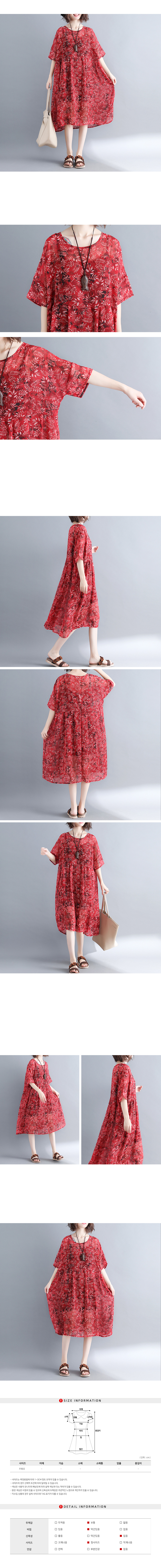 화사한 레드컬러에 루즈한 핏감으로 편안한 착용감을 제공해주는 쉬폰원피스