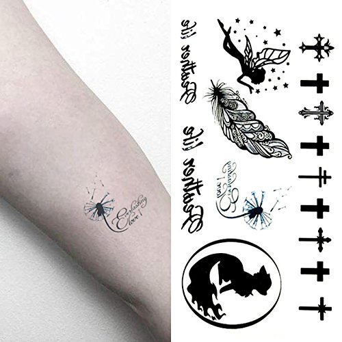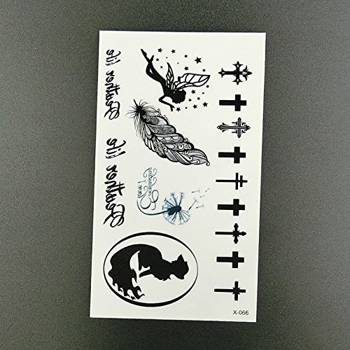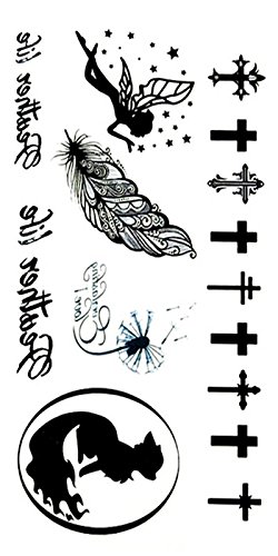 Oottati Small Cute Temporary Tattoo Cross Feather Fairy Fox (2 Sheets)
