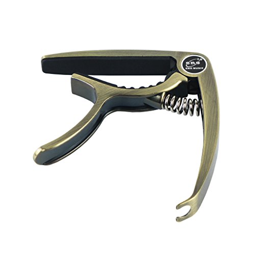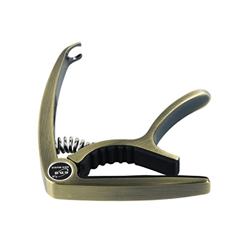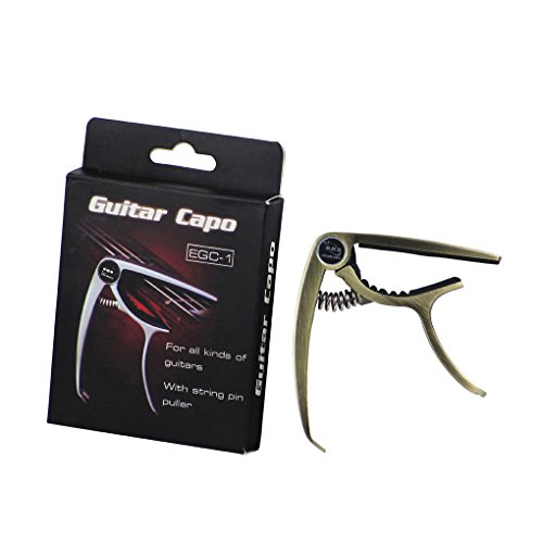 Product Description Feature:* The capo has a great performance for all kind of guitar,can clamp firmly onto most fretboards without buzz or loss of tuning.* With smooth surface and ergonomic handle,it is made of zinc alloy, lightweight but durable.* Strong spring is made of stainless steel,with great acid resistance,will help hold all of the strings down.* Soft silicone padding helps to protect the strings and fretboard without compromising on the quality of pitch and tone.* Easy to use,quickly and easily released and repositioned without disturbing the tuning.Can be repositioned with just one hand.* There is a string pin puller at the end of the handle, which can help you to remove string pins without making damage to your guitar.Specification:Fits for all kind of electric, acoustic and classical guitarMaterial: Handle is made of high quality zinc alloy, with soft silicone padding to protect your guitar perfectly.Color: Metallic BronzePackage include:1 x Packaged Guitar Capo 0