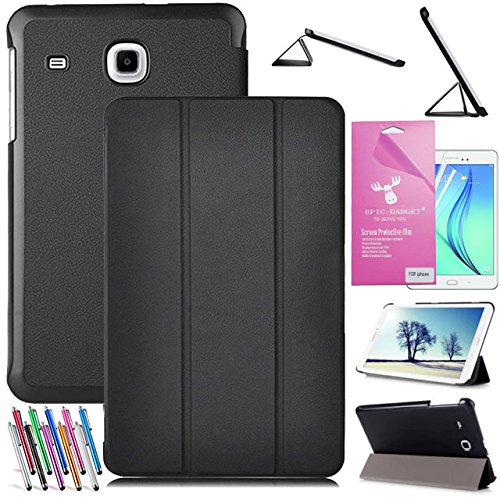 Galaxy Tab E 8.0 Case, EpicGadget(TM)Tri-fold Stand Ultra Lightweight Slim Smart Cover PU Leather Case for SM-T377 Samsung Tab E 8" Tablet With Tab E 8.0 Screen Protector and 1 Stylus (Black)