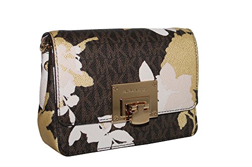 MICHAEL Michael Kors Women's Tina Small Clutch Cross Body Leather Handbag (Brown)
