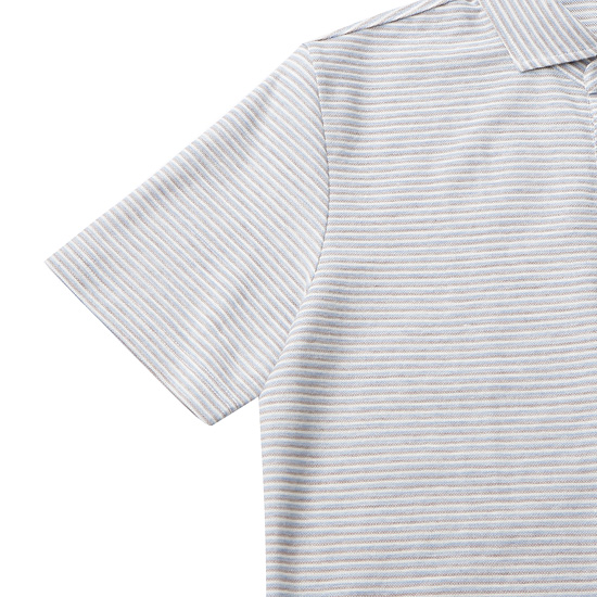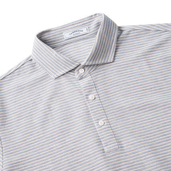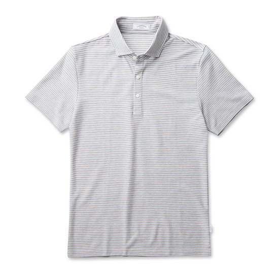 - 컬러감있는 스트라이프 패턴이 적용된 남성 카라 티셔츠.