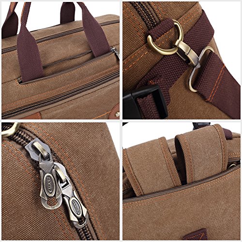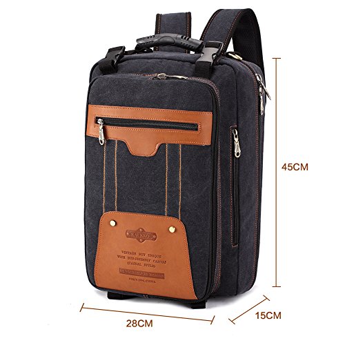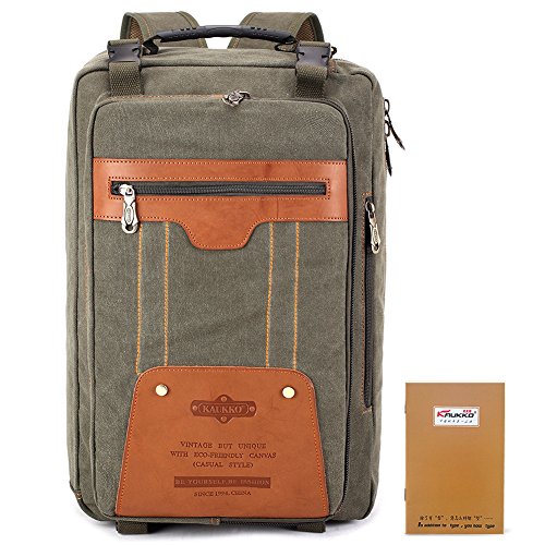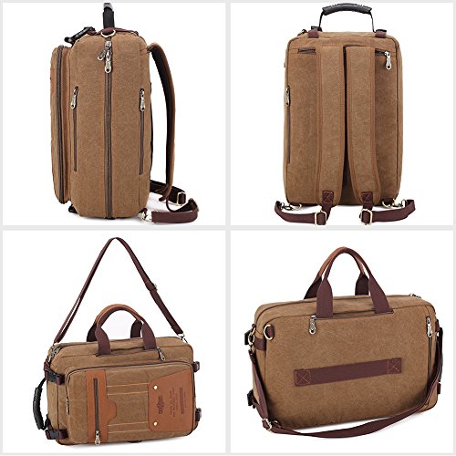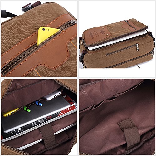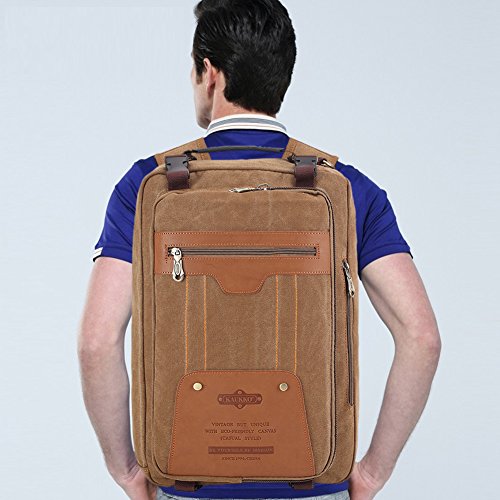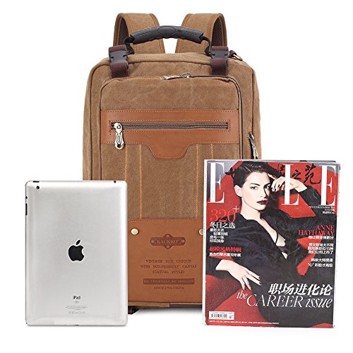 -. Brand : KAUKKO -. Department : mens -. Feature : ✔ HIGH QUALITY MATERIAL- It's 3 ways to carry - Backpack+Messenger bag+Handbag. Material :16 oz high density washing canvas,100% contton lining. / ✔ GREAT SIZE FOR SCHOOL AND WORK. - Size: L11*W5.9*H17.7 inches / L28*W15*H45 cm, The computer compartment can hold 14 ''laptop. Fit up A4 paper file, 13-15''laptop,Umbrellas, Wallets ,Books, glasses,Paper towels and other items. / ✔ LOTS OF POCKETS,INCLUDE LAPTOP PADDING. - Compartments: 1*big main bag, 1*laptop/tablet compartment ( 28cm width up to 13-15" laptop),2*inner pouches,2* inner mobile phone pouches,1*inner notebook poches ,1*outside front zipper bagzipper pocket. / ✔ STYLISH DESIGN. - This bag is fashionable enough to take with you to office/school, yet also casual enough to wear for everyday use. / ✔WARRANTY - KAUKKO Promise - 1,12 months warranty. 2,60 days money back guarantee or exchange. 3,Full refund or resend if the package delayed or lost by shipping. -. PackageQuantity : 1 -. ProductGroup : Apparel -. ProductTypeName : LAGE -. Size : one size -. Title : KAUKKO Vintage Canvas Leather Backpack/Handbag/Messenger Bags