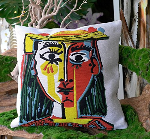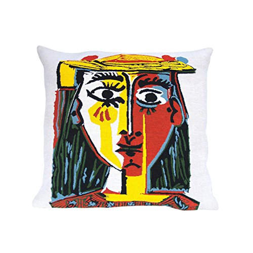 - Decorative pillow featuring a Surrealist painting of Picasso representing a woman wearing a hat. © Succession Picasso “Femme au chapeau” (1962)