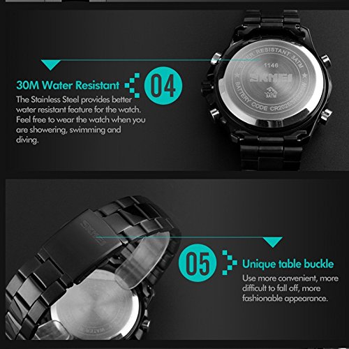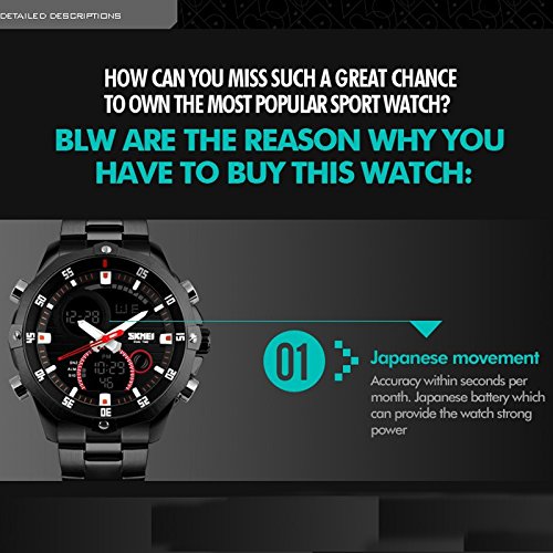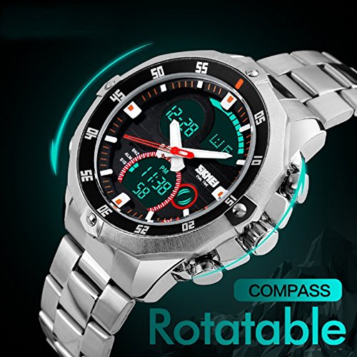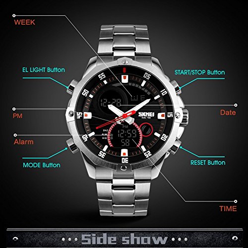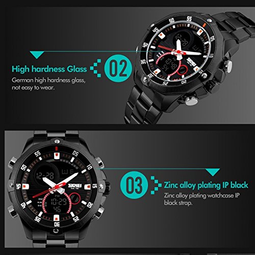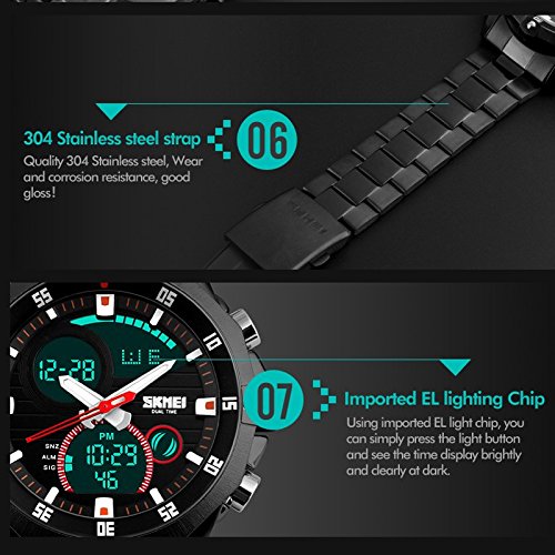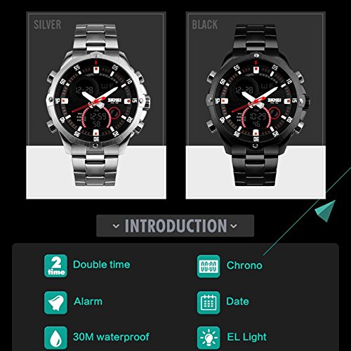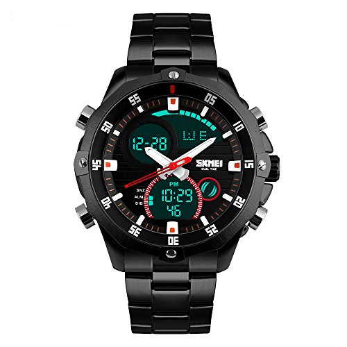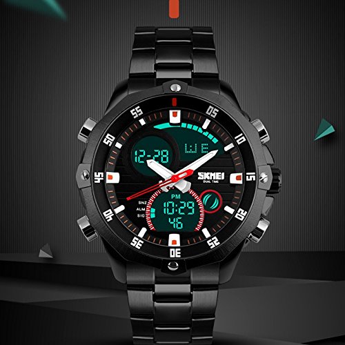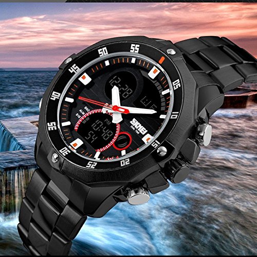 -. Title : Smalody Full Steel Military Watch Casual Waterproof Watches Dual Movement Digital LED Wristwatch