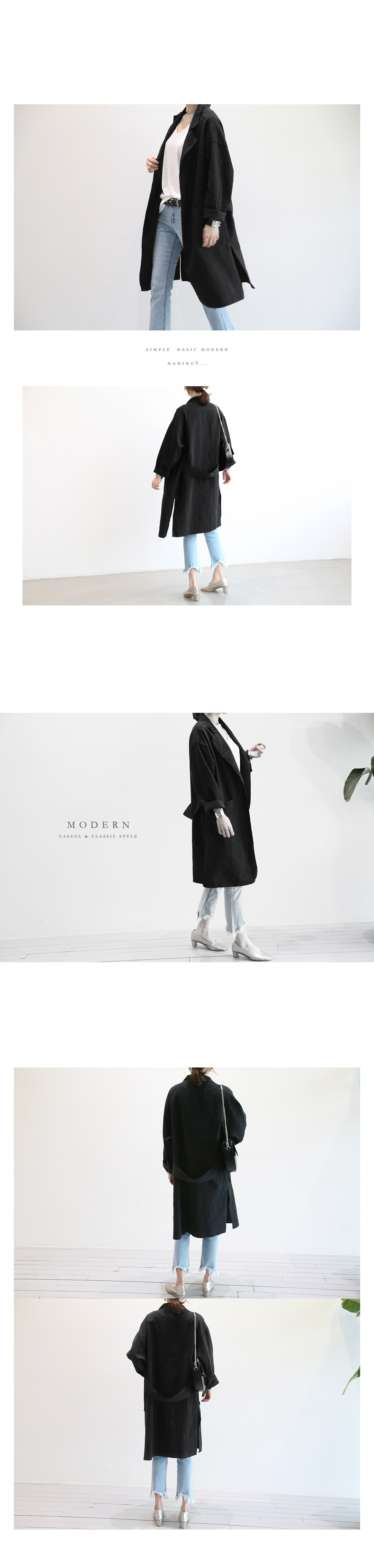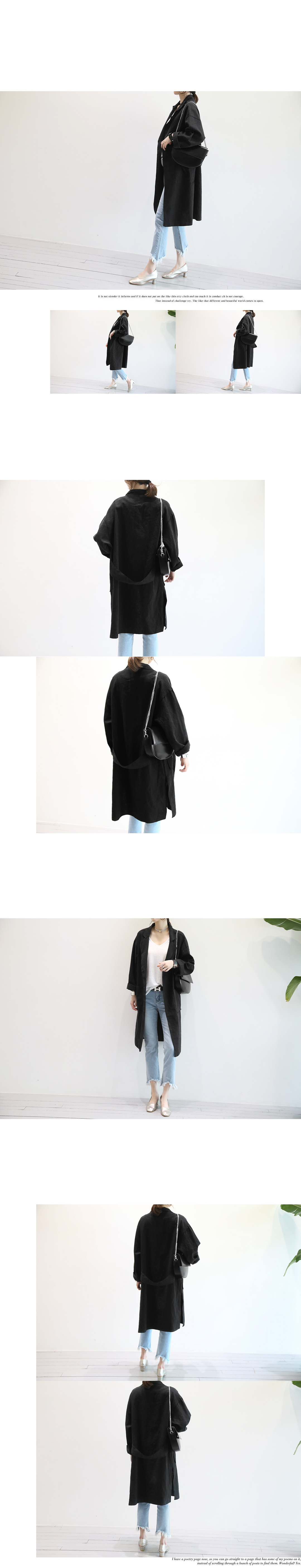 옆밑단 트임으로 활동성이 편안하구요 앞뒤 살짝 언발란스 기장으로
