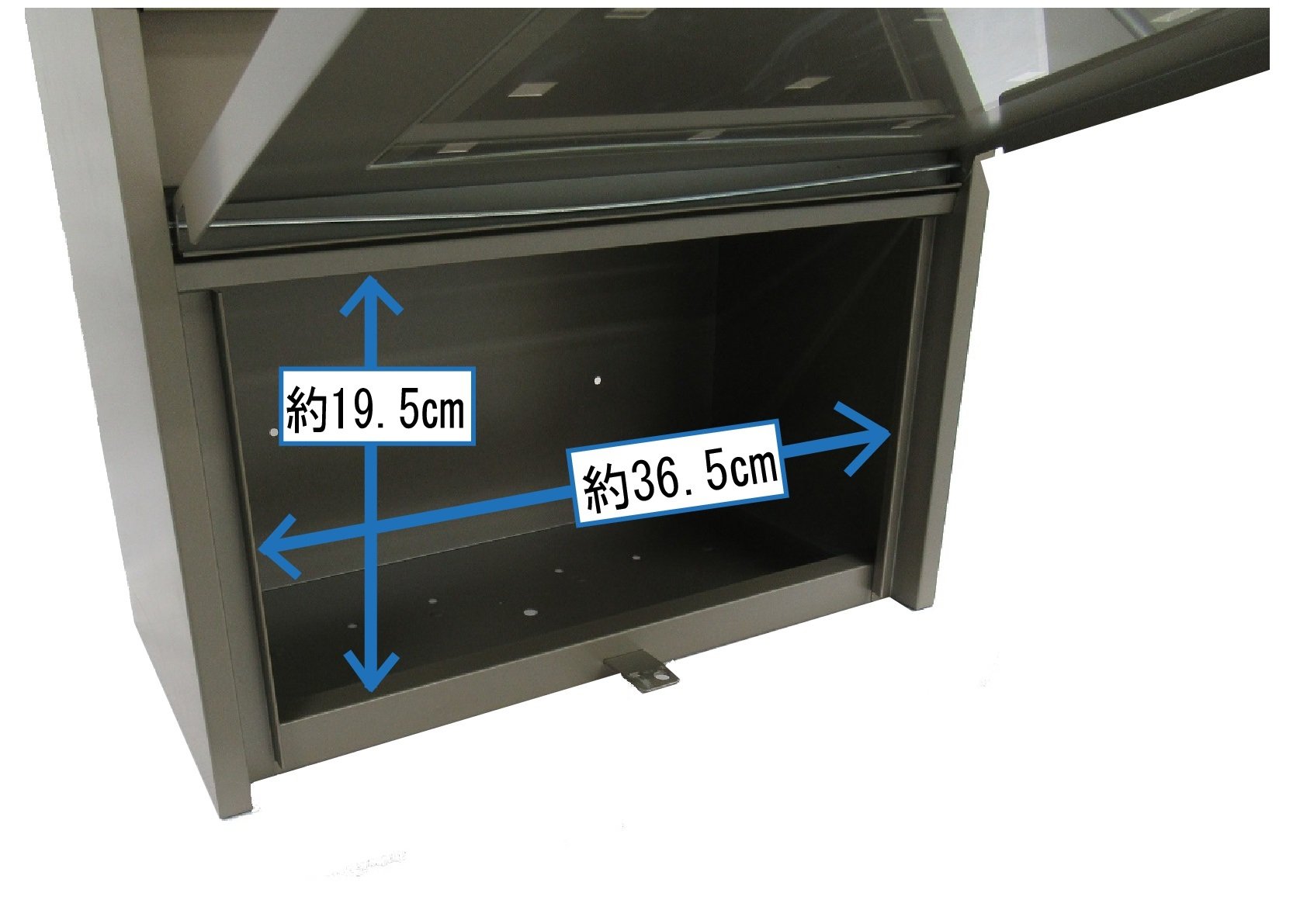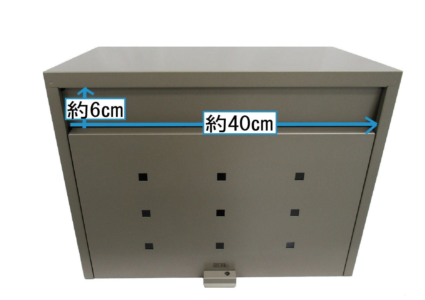 It has a wide width and encloses B4 size envelopes, large boxes, circulation boards, and magazines.