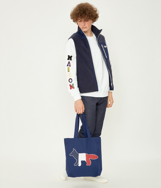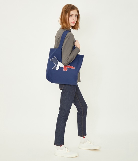 Maison kitsune tri color eco bag navy four bags four tote bag fox simple 20 cute bags