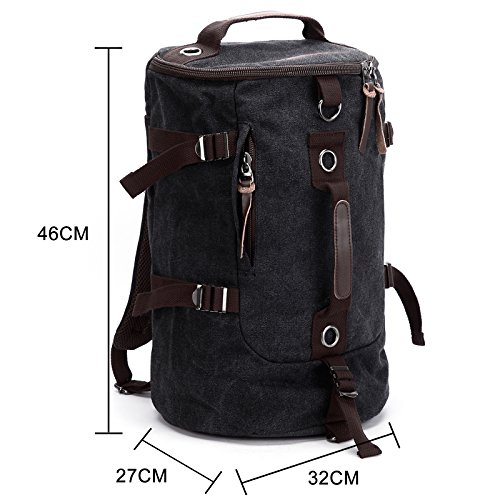 - Feature : Bag shape: cylindrical shape / Bucket bag backpack large capacity: 40L / Bag weight: 1030g; Dimension: 46 x 32 x 27cm / Applicable gender: neutral/male or female / Material: Canvas,Leather trim