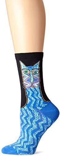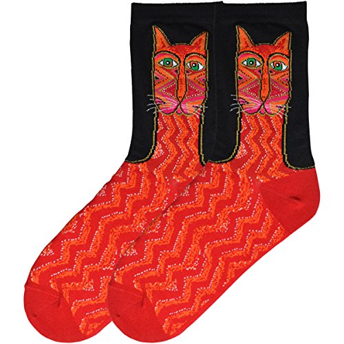 K. Bell Socks Women's Laurel Burch Tribal Zig Zag Cat Crew, Red, 9-11