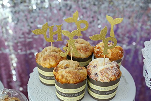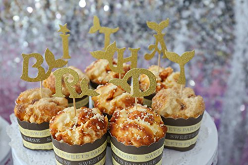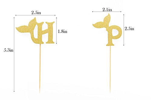 Mermaid Tail Cupcake Toppers Happy Birthday Letters Gold Personalized Design 13 Pcs