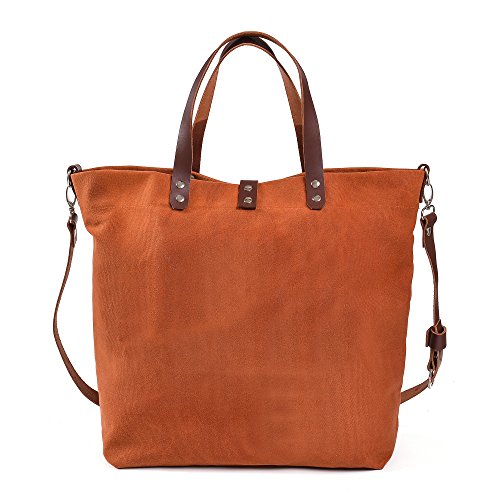 -. Brand : T&S Grand -. Color : Brown -. Department : womens -. EAN : 0757349262520 -. Feature : HIGH QUALITY & DURABLE - Crafted from 16oz hard waxed canvas and premium 2.5mm thickness genuine leather in brown color. / INTERNAL STRUCTURE - One inner 8" x 7" zippered pocket, allow you to organize your everyday essentials easily. / CLOSURE & SHOULDER STRAP - Firmed metal closure, adjustable & detachable shoulder strap. Shoulder strap can be remove easily and adjusted to any preferred lengths. This well-designed bag can be comfortably carried by hand or worn on shoulder. / DIMENSIONS - Approximate L 18" across top, 12.6" across bottom x W 6" x H 14" / STYLISH & SIMPLE - Simple yet stunning & elegant, will never go out of style. Perfect for work/shopping/ travel/ school and much more. Will accompany any outfit well. -. ProductGroup : Apparel -. ProductTypeName : LAGE -. Size : One Size -. Title : Genuine Leather and Waxed Canvas Handbag/Tote/Purse with Handles and Shoulder Strap -. UPC : 757349262520