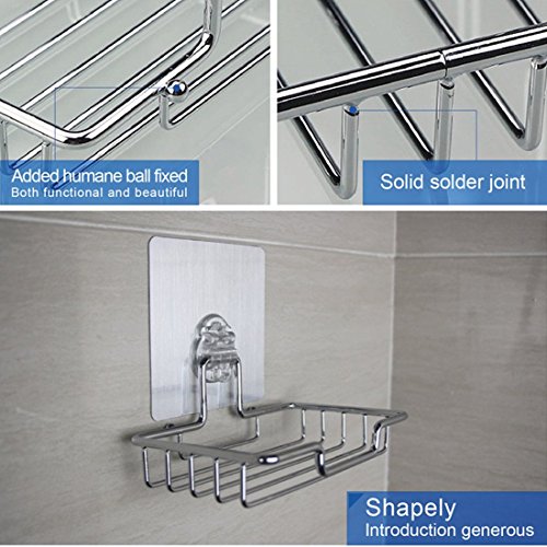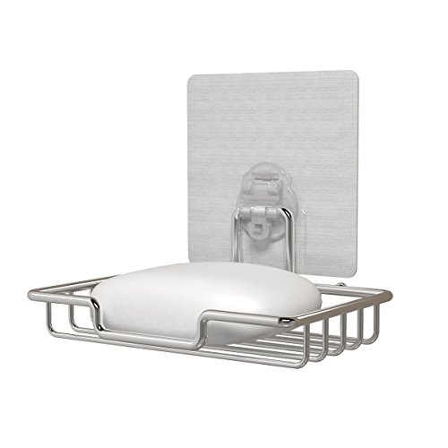 - Self Adhesive Stainless Steel Soap Dish - Size is 13.4*8.8*2.8(cm) ,Using the fourth generation of Velcro,the appearance looks more fashionable and No more Drilling/screwing/making holes, this self adhesive soap dish can hold weight load up to 20LB. An ideal soap saver dish for shower/bathroom/kitchen/counter top and more