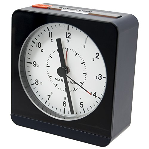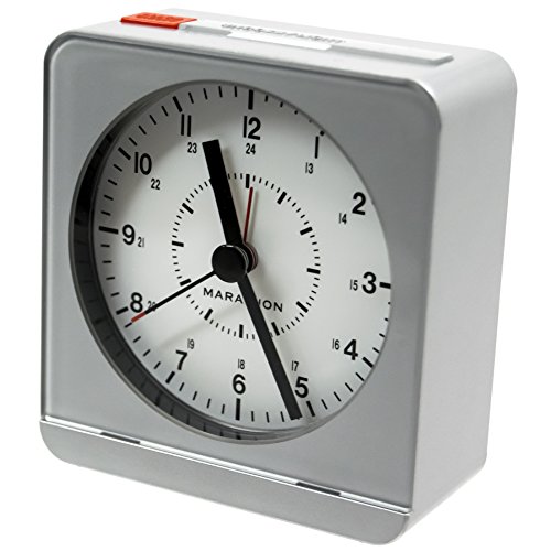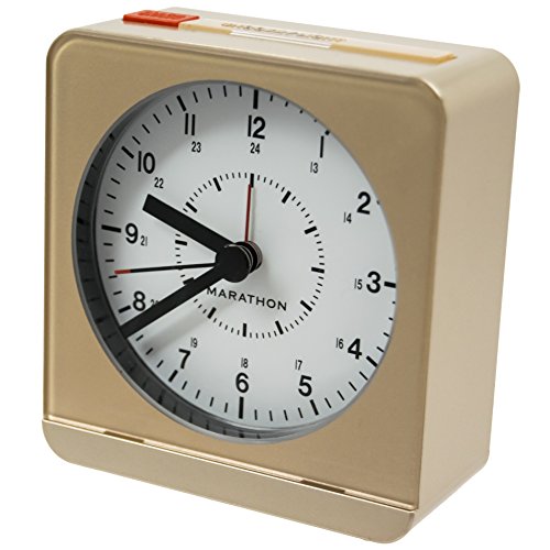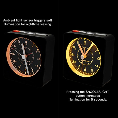 Marathon's Analog Desk Alarm Clock with Auto-Night Light is the perfect marriage of form and function. It features an elegant, classic design with modern touches to create the perfect bedside instrument. The ambient light sensor ensures the face is illuminated in the dark and easy to read. A sweeping second hand does not emit an audible tick. The Alarm ON/OFF and SNOOZE/LIGHT buttons are conveniently located on the top of the clock and are easily accessible even in the dark.
