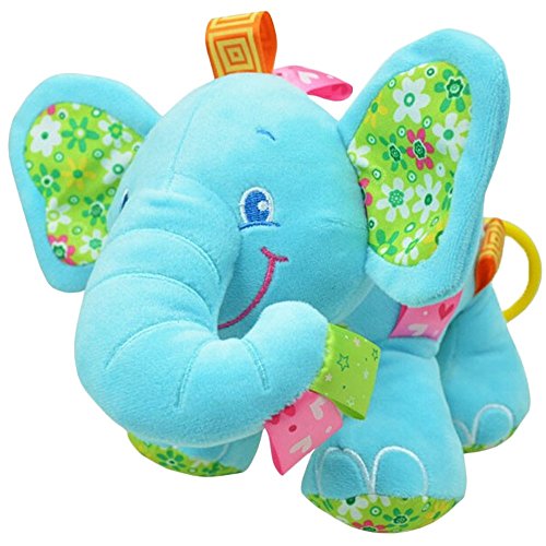 Adorable elephant stuffed toy for baby, 0 to 12 months. Pull cord to hear soft lullaby song that will help to calm and soothe baby. This toy can be hung and can also be held in infant's hand as they grow. It can easily be taken anywhere you go, so can become a great source of comfort for baby. Elephant features nice bright colors that will keep baby's attention. Available in bright blue and pink.Feature