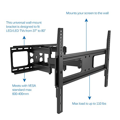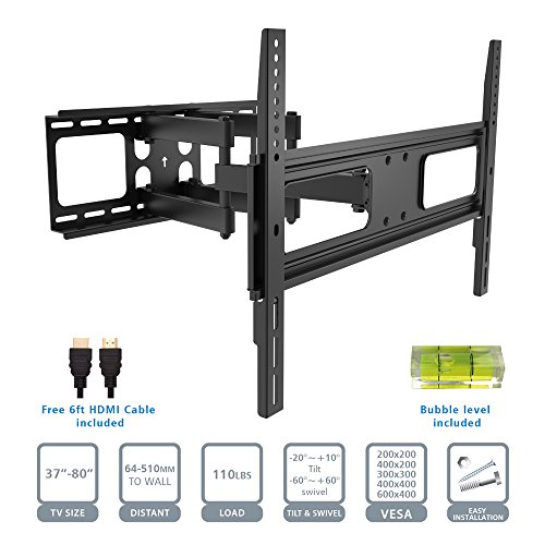 -. Title : Articulating TV Wall Mount with 6ft HDMI Cable(05422A)Full-Motion TV Stand Bracket for 37"-80"LED LCD TV Flat Screen VESA up to 600x400,-20°~+10°Tilt,-60°~+60°Swivel,Max Load 110lbs.Power by ProH