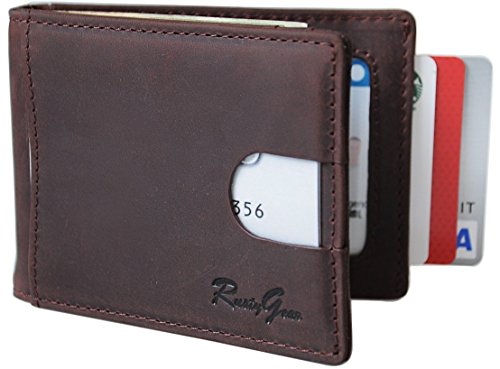 -. Binding : Apparel -. Brand : RUSTYGEAR -. Department : mens -. Feature : · SECURE & SAFE. RUSTYGEAR Mens Slimline Wallets are equipped with the latest RFID technology to prevent unauthorized scanning of your personal cards and ID. Will block 13.56 MHz or higher. While travelling, front pocket wallets are far less a target for your pickpocket thief. / · 100% FULL GRAIN CRAZY HORSE LEATHER made from the finest leather to enhance the texture and color of the strong hard wearing hide. Robust stitching and High quality control measures ensure your wallet be part of your RUSTYGEAR ESSENTIALS for a long time. There will always be a variation of color due to being made from a natural hide. This wallet will be as individual as you are! Leather cleaner will ensure your wallets stays supple and as good as new. / · SLIM & PRACTICAL: Your RUSTYGEAR RFID wallet fits neatly into your trouser front pocket or your inside jacket pocket. Its slim design allows it to comfortably carry 10 credit cards, license ID and cash without being bulky and obvious. Wallet size 4" x 3". With smart pull out strap to access your most used cards. / · GIFT BOX INCLUDED. Each RUSTYGEAR wallet will arrive in a protective dust bag inside a stylish presentation gift box. / GUARANTEE We trust you enjoy your RUSTYGEAR RFID Wallet but if for ANY reason you change your mind, or if you are not 100% satisfied, or find the product unsuitable then please contact our customer service team who will arrange a replacement product or provide you with a FULL REFUND. -. IsAdultProduct : 0 -. ProductGroup : Apparel -. ProductTypeName : ACCESSORY -. Size : Slimline -. Title : RUSTYGEAR Mens Leather Wallet Thin Slim Minimalist RFID Blocking Bifold Money Clip