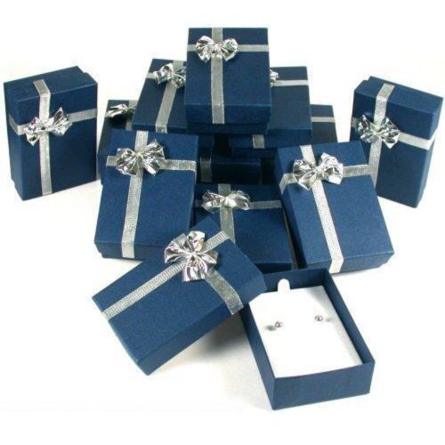 12 Bow Tie Earring Gift Boxes Blue Silver Jewelry Box