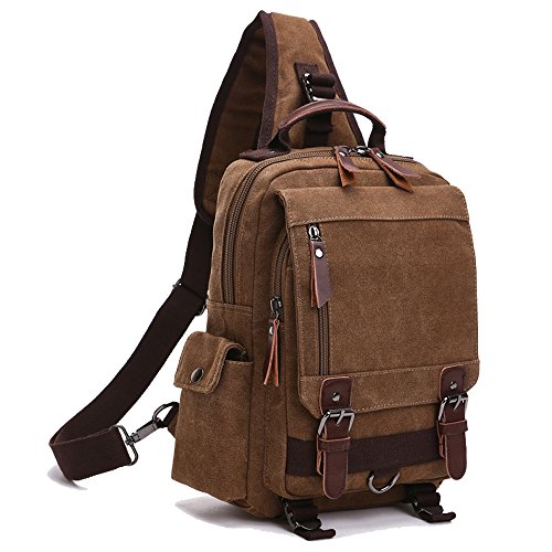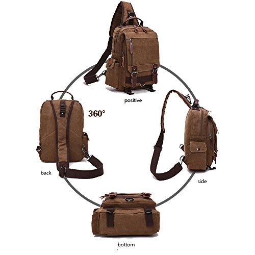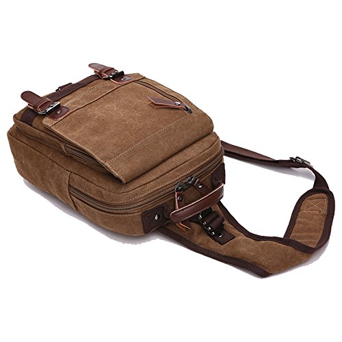 -. Feature : Canvas Cross Body messenger sling bag is made of durable canvas material and nice quality PU leather trim on the outside£¬more luxurious material inside the main compartment. / 10.2*13.6*4.4 in (L*H*W). The Cross Body shoulder bag can fit a slim laptop up to 13" without laptop sleeve/case. This canvas backpack is not a large backpack, but it is a great size to take to a day trip or shopping. The bag can be either carried with the hand handle or adjustable shoulder strap. Weight: approx. 810g. The full length of the strap: approx. 41in. / he buckles on the top flap is magnetic snap, easily open and close the bag and keep everything very secure£¬Adjustable shoulder strap;The straps is adjustable and ultra-comfortable across your back and chest. It can act as a single-shoulder bag/sling bag, or a cross-body bag for use.the strap can be reached to 110 cm / It is a great daypack for traveling, school, dating, shopping and outdoor activities in daily life Ideal for outdoor sports (hiking, camping, climbing, cycling, etc) and travel use / It's also a perfect gift for your father, brother, friends and classmates,