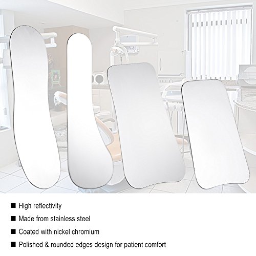 Features: High reflectivity, offering the finest possible color and image transfer. Made from stainless steel and coated with nickel chromium for maximum reflectivity. Designed with polished, rounded edges for patient comfort. Compatible with cold sterilization and autoclave techniques. Necessary tool for dentists in dental treatment.